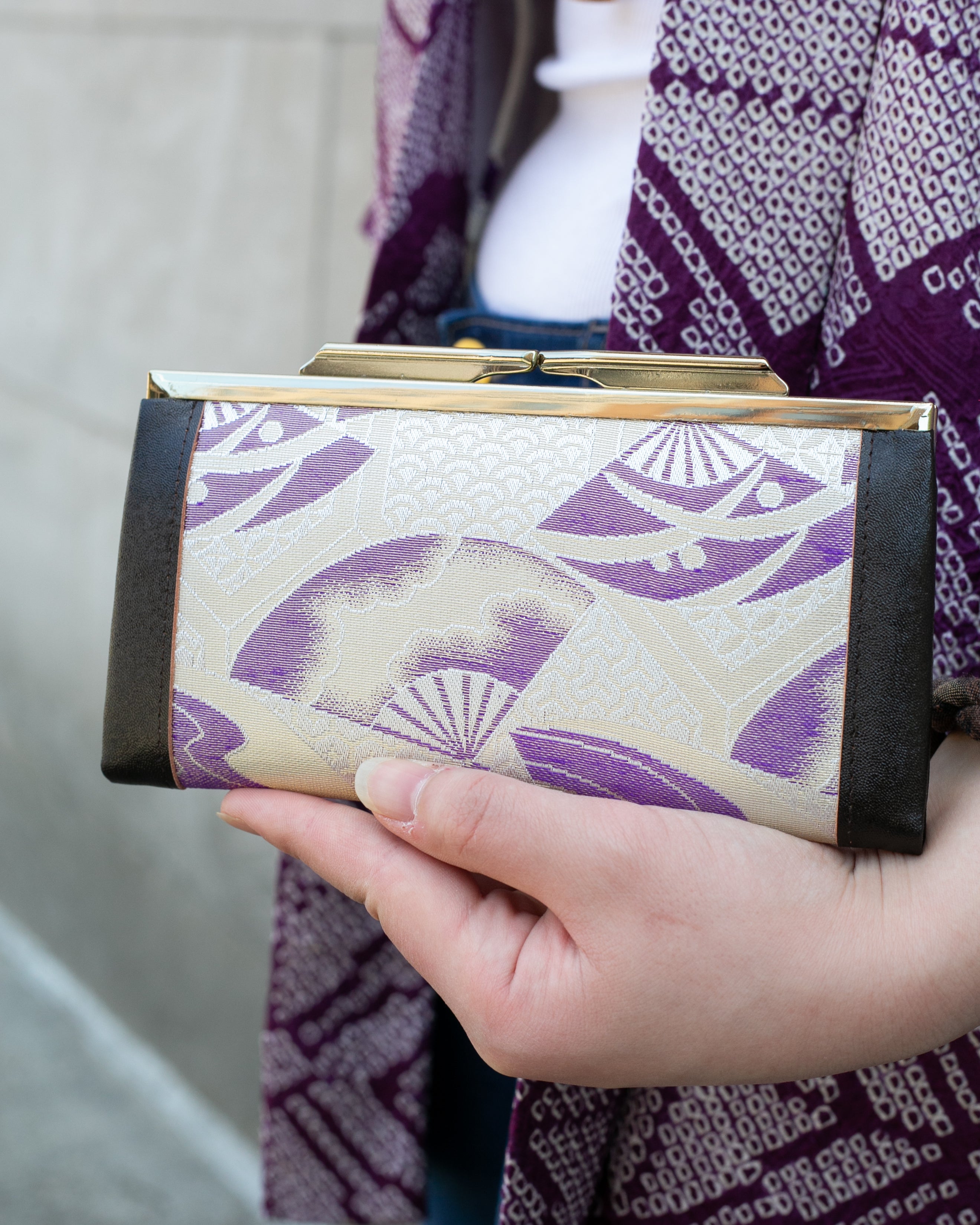 Our intricate, one of a kind vintage bags are estimated to have been produced between the 1970s–2000s. These bags are traditionally paired with kimonos as a luxurious statement piece. However, these versatile pieces may be dressed up or down with daily casual wear.
