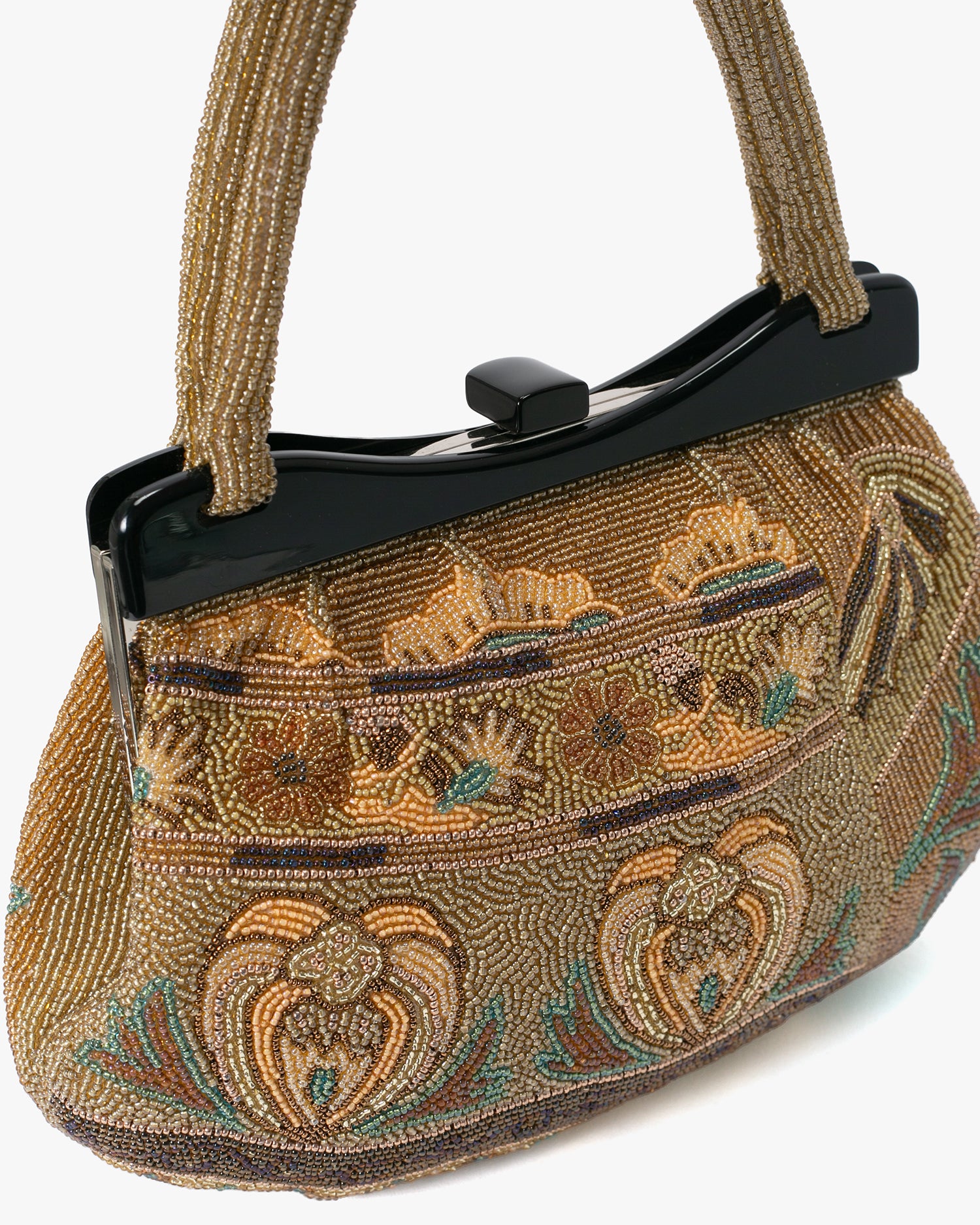 • Vintage Bag, Purse, Beaded, Gold with Multi Designs and Clasp