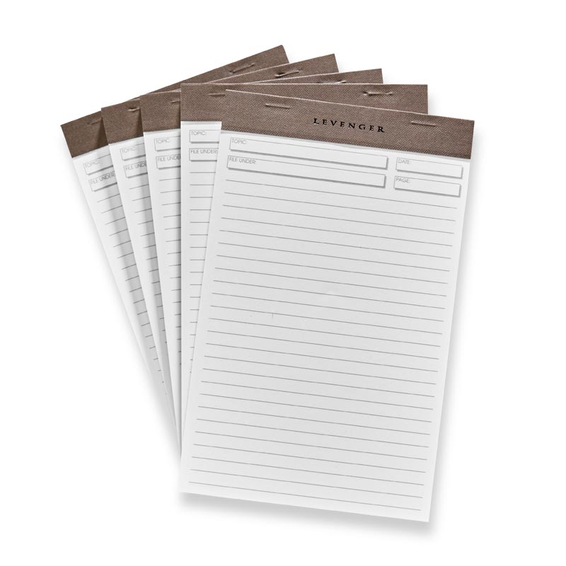 This Product Ships Free. Substantial full-page ruled notepads for the paper aficionado. At Levenger, we understand being particular about paper. Our Freeleaf® notepad paper is smooth and substantial, friendly to all types of pen and ink and made with warm white 90-gsm paper stock, with a firm cardboard pad backer. In fact, we believe the quality of these fine notepads can actually help you think better, and capture brilliant ideas more effectively.